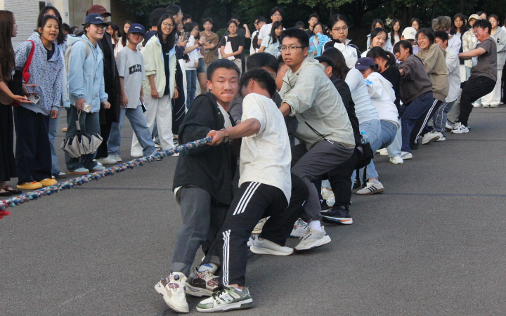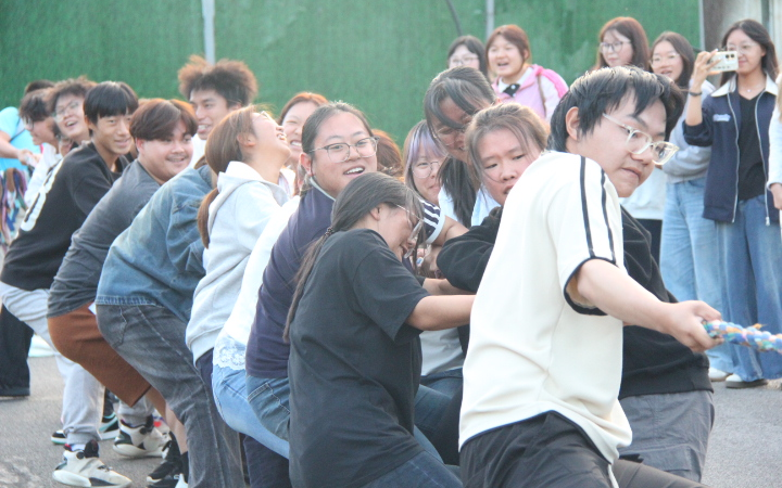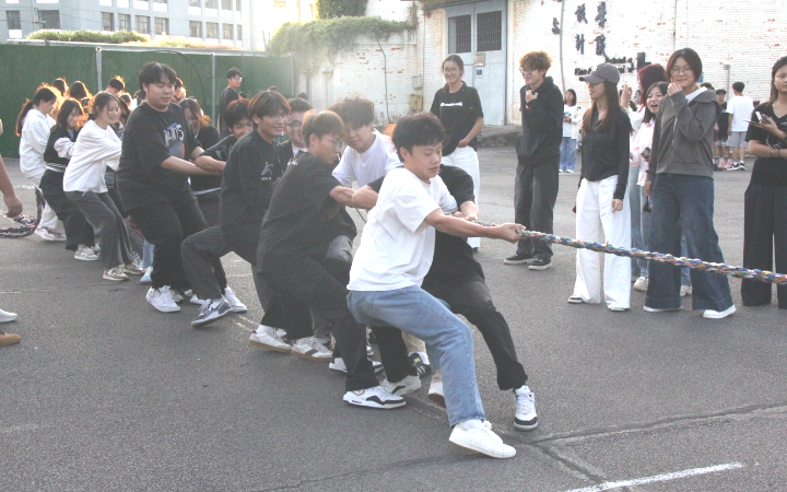 随着一声清脆的哨响,整个运动场瞬间沸腾。参赛队员们个个紧握长绳,身体后倾如蓄势待发的劲弓,在整齐划一、响彻云霄的口号声中凝聚起磅礴合力,赛场上各支队伍风格迥异却同样精彩,有的稳扎稳打如精密仪器般步步为营,有的则凭惊人爆发力多次上演绝地反击的逆转好戏。纵使掌心磨红、汗水浸额,每位运动员眼中也始终闪耀着为班级荣誉拼尽全力、绝不言退的坚定火光。赛场边缘,啦啦队同样吸睛,加油声此起彼伏,将比赛氛围一波波推向炽热的高潮。